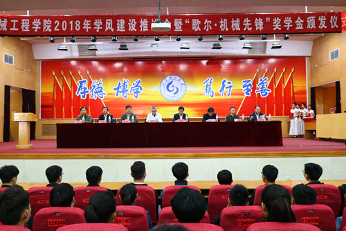 3月29日下午,williamhill英国中文2018年学风建设推进会暨“歌尔·机械先锋”奖学金颁发仪式于3号教学楼报告厅顺利举行。会议由学院党总支副书记田兆富主持,WilliamHILL中国党委常委、副校长魏修亭,歌尔股份有限公司事业部总经理孙武钢,学校教务处处长任传波,学校学生工作部副处长牟万新以及学院相关负责人出席会议,获奖学生和学生代表参加会议。