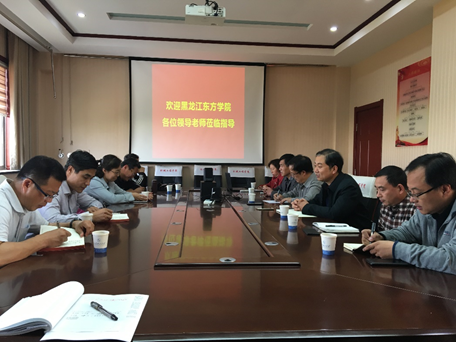 2018年10月22日下午2:30,黑龙江东方学院机电工程学部常务副主任孙曙光教授、教学副主任陈磊副教授一行莅临我院进行关于CDIO教育模式、工程教育认证、实验室建设工作的调研。赵国勇副院长带领机械电子工程系和机械制造系骨干教师参加座谈。