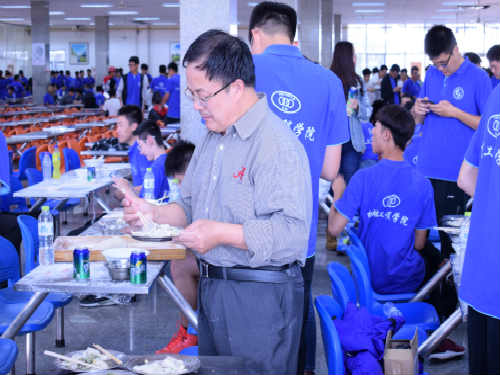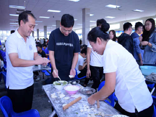 自己动手,丰衣足食。虽然大家包饺子的手艺千差万别,但小小的饺子传递着大家对同窗与班级的真情与友爱。通过“包饺子”活动更促进了学生之间的沟通交流,增进了友谊,也让大家充分感受到了机械学院这个大家庭的温馨。学院领导与老师们亲身教学,与同学们一起参与到包饺子活动中,提高同学们热情的同时也促进师生关系,现场一片热闹场景。活动持续两个多小时并在一片欢声笑语中结束,但是大家仍然意犹未尽,大家看着自己的劳动成果,纷纷露出笑容并合影留念。‘
