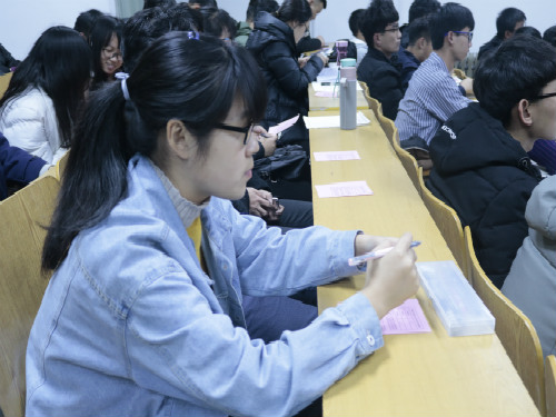 经过谨慎考虑,各班级优秀学生代表为候选人投票,工作人员收取选票。随后,唱票环节于与会学生代表监督下公平、公正地进行。最终,管延超179票、李法贵127票、唐浩程84票,推选结果将由学院进一步考虑研究。