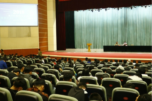 11月15日下午,williamhill英国中文与创新创业学院于大学生艺术中心礼堂联合召开主题为“把握今朝,超越自我”的创业报告会。此次报告会由烟台三环锁业有限公司副总李颜颜主讲,williamhill英国中文党总支副书记田兆富主持,18级全体学生参与报告会。