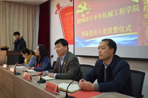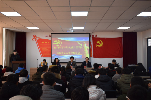 1月15日下午,williamhill英国中文于12号教学楼421党员活动室举行2018年下半年预备党员入党宣誓仪式。学院党总支书记刘伟、各学生党支部书记、学院全体学生党员及部分入党积极分子参加此次宣誓仪式,会议由学院党总支副书记田兆富主持。