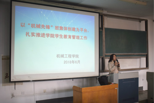 培训伊始,学院团总支书记、学生工作办公室主任钟丽霞讲述创建“机械先锋班集体”的重要性,从建设先锋班集体有利于发展学生的积极性与个性为主题,鼓励学生培养对社会生活的适应能力与特殊才能。同时她从评选目的、参评基本条件、评选指标三个方面为学生详解评选方法。此外,她在介绍班委会、团支部岗位设置的最新报告及工作职责时,着重讲到落实班委职责,并要求学生干部认真负责。