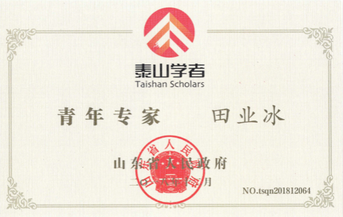 山东省人民政府办公厅发布《关于公布泰山学者攀登计划专家和泰山学者青年专家名单的通知》,我院田业冰教授入选泰山学者青年专家。