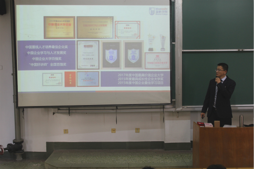 王予彬对蓝帆医疗及于海瑞老师作简要介绍,并阐述此次活动对学生今后职业规划、岗位规划和个人发展的积极意义,他希望与会学生认真听讲、积极思考。
