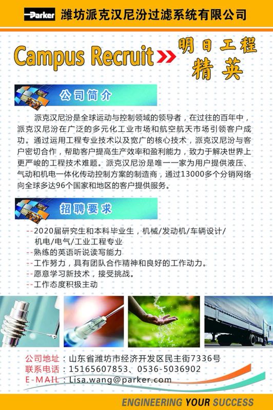 现有潍坊派克汉尼汾(中国)过滤系统有限公司招聘暑期实习生,该企业为美国独资企业,主要为发动机方向。