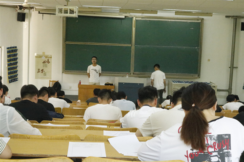 开考前,朱峰宣读考试要求及注意事项,并表示希望全体参试学员仔细作答,考出素质,考出品格。