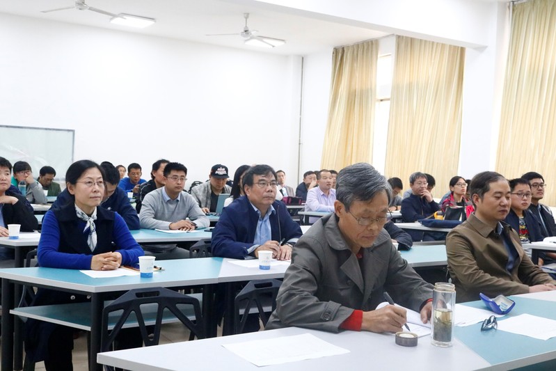 10月24日下午,williamhill英国中文在12号教学楼411教室举办进修助课、实践锻炼以及海外教师能力提升项目验收报告会。报告会由学院副院长赵国勇主持,学校教学督导刘军营教授到会指导,各系教职工代表共53人参加了会议。