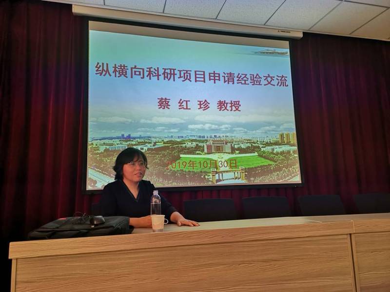 程祥院长对蔡红珍教授的到来表示热烈欢迎,并简要介绍了她在教学及科研等方面的研究成果。随后,蔡红珍从纵向课题、横向课题以及团队合作三个方面进行讲解。她表示,纵向课题应针对相应的政策选择好研究方向,在明确奋斗目标后多方请教沟通以便提前做好准备,方能完成课题申报并实施规划;横向课题应提前了解技术需求并分析技术价值,在明确好责任义务后,掌握谈判技巧并付之努力才能圆满完成任务。会上,蔡红珍提到,团队合作是指有能力,有信念的人在特定团队中,为共同目标,互相支持合作奋斗的过程,同时,团队合作需要尊重差异、换位思考,学会接受与理解不同意见,互相包容,在工作中勇于担当。