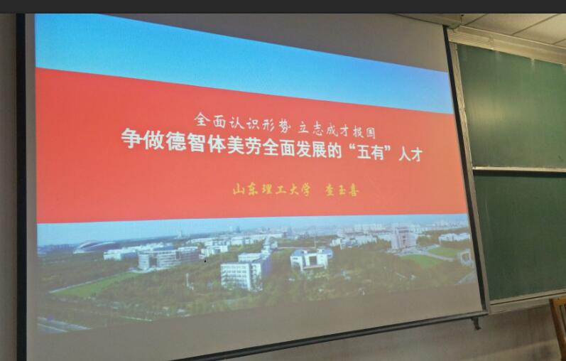 课上,查玉喜以“全面认识形式,励志成才报国,争做德智体美劳全面发展的‘五有’人才”为主题,结合自身经历和人生感悟为学生讲述中国近年的发展速度,深刻分析了当今国际局势对我国发展态势的影响。他带领同学们全面、系统地回顾了新中国成立70年以来,党和国家事业发展所取得的举世瞩目的历史性成就、重大创新和宝贵经验。