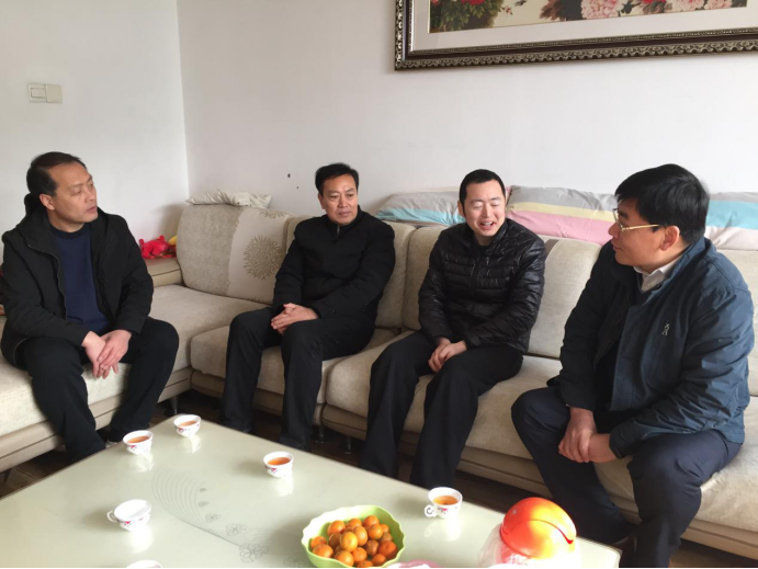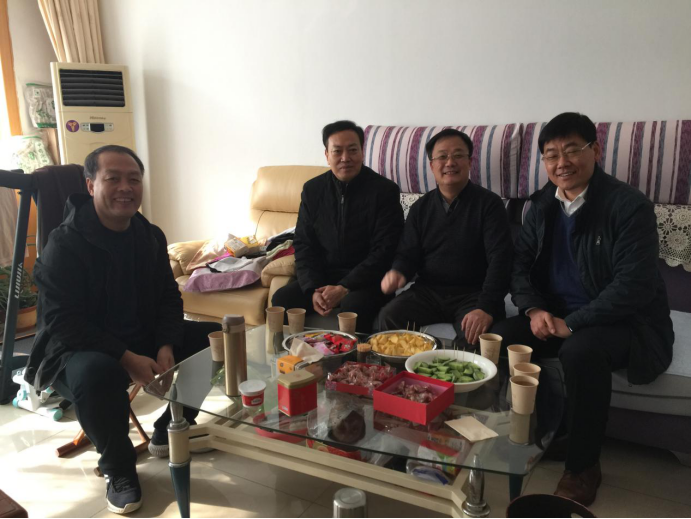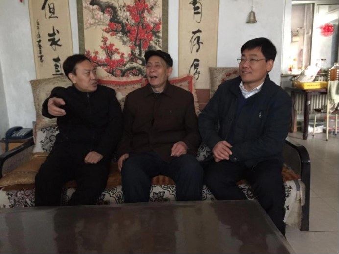 刘伟、王效岳、田兆富、刁军来到退休教师党员胡维信、祝玉寅、韩进宏、马荣庆家中,向退休教师们带去春节祝福,代表全院师生关切询问了老教师们的身体和家庭生活等情况,介绍了学院的发展近况、2019年取得的成绩和2020年发展规划,希望老教师们对学院发展提出宝贵建议,为促进学院发展和一流学科建设发挥余热、贡献力量。