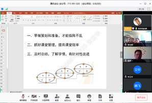 陈宗民老师分别从(1)早做策划和准备,才能临阵不乱(2)抓好课堂管理,提高课堂效率(3)及时总结,了解学情,有针对性改进等三个方面进行了阐述。陈老师首先介绍了在开课前所做的大量准备工作,其次讲解了在学校网络教学平台和智慧树平台上如何制作在线测试,以及如何导出学生在线时长、测试成绩、互动次数等数据,尤其强调了要多与学生互动及在线测试的重要性,题库的建设需要长期的积累,以及重点帮扶学习积极性差的学生。