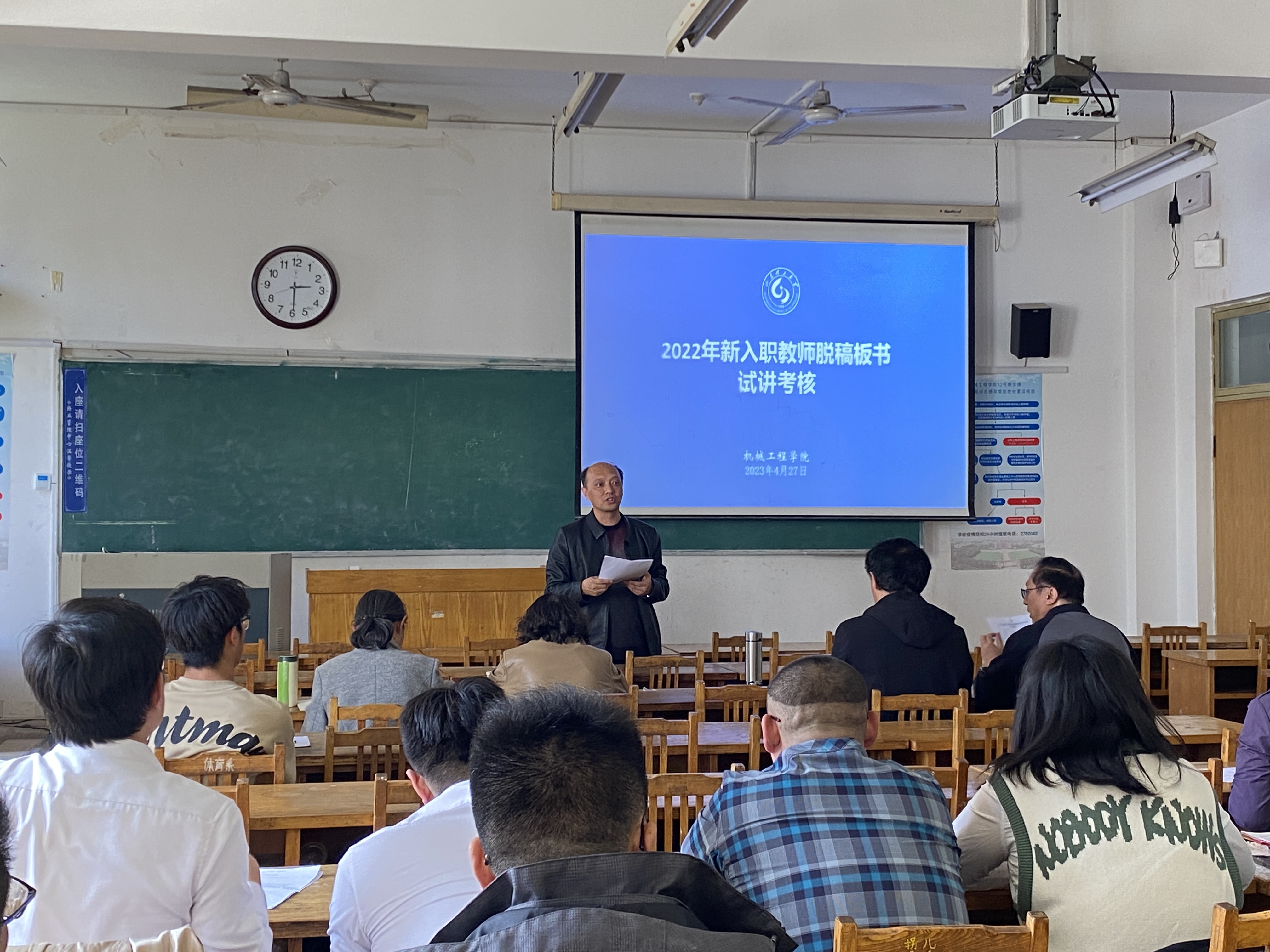 新教师脱稿板书试讲活动分系级和院级两个阶段进行。第一阶段由各系组织开展,各系精心组织,成立评审小组,对试讲新教师进行现场评议指导,有些评审教师更是以身示教,新教师受益匪浅。