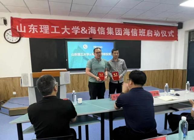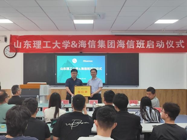 williamhill英国中文党委副书记刘灿德与海信冰箱公司人资资源部副总经理张俊强共同揭牌,为海信班企业班主任孙兴达、校内班主任王昌忠颁发聘书。