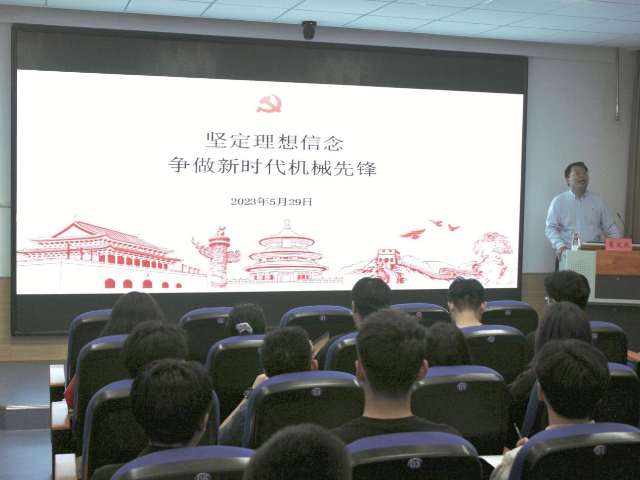 葛文庆以“坚定理想信念、争做新时代机械先锋”为主题,从青年学生要坚定理想信念、努力争做新时代卓越工程人才等六个方面与大家进行了交流。