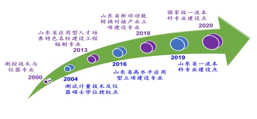 测控技术与仪器专业创建于2000年。2004年获批测试计量技术及仪器二级学科硕士点,2010年获批仪器仪表工程专业学位硕士点,2011年获批仪器科学与技术一级学科硕士点。2012年被评为山东省首批“本科特色(品牌)专业”;2013年被确定为山东省特色名校建设工程辐射专业;2016年获批山东省高水平应用型立项建设支撑专业;2017年与山东新华医疗器械股份有限公司共建测控技术与仪器新工科创新实验班;2019年本专业被评为山东省一流本科专业建设点;2020年获批国家级一流本科专业建设点。