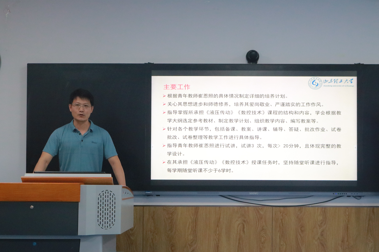 本次考核小组由校、院两级教学督导、教授委员会成员、教学名师及教学骨干等共计7名评委组成。教学院长李志永主持了考核工作,介绍了实施青年教师导师制的必要性,并强调推进青年教师导师制是促进青年教师快速成长的有效举措,对于实现学院人才培养的高质量发展具有十分重要的意义。