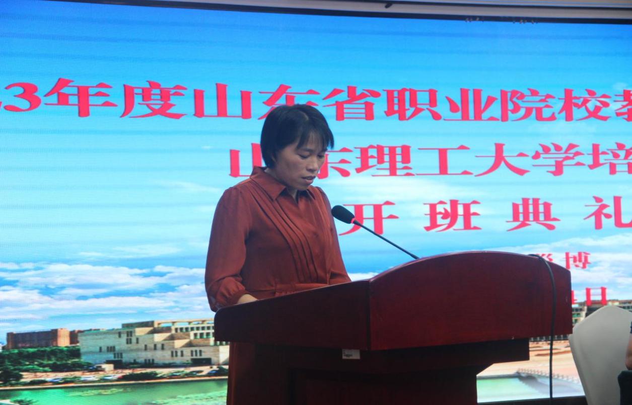 开班仪式上,东营市技师学院古向伟老师代表全体参训学员发言。她向参加此次培训的学员向主管部门、学校及其相关机构领导、班主任以及任课老师表示衷心的感谢,并表示要珍惜机会,以严谨的学风,刻苦的精神,努力学习不断进取,争取以优异的成绩交出一份满意的答卷。