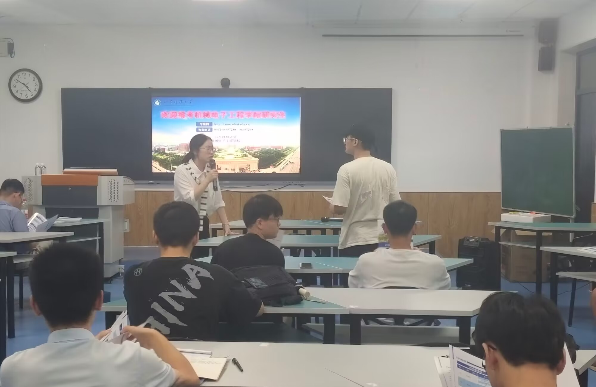 2023年9月12日,山东科技大学一行来我院开展2024年硕士研究生招生宣讲工作,学院2020级机械制造、机械电子等专业30余名学生参加宣讲会。