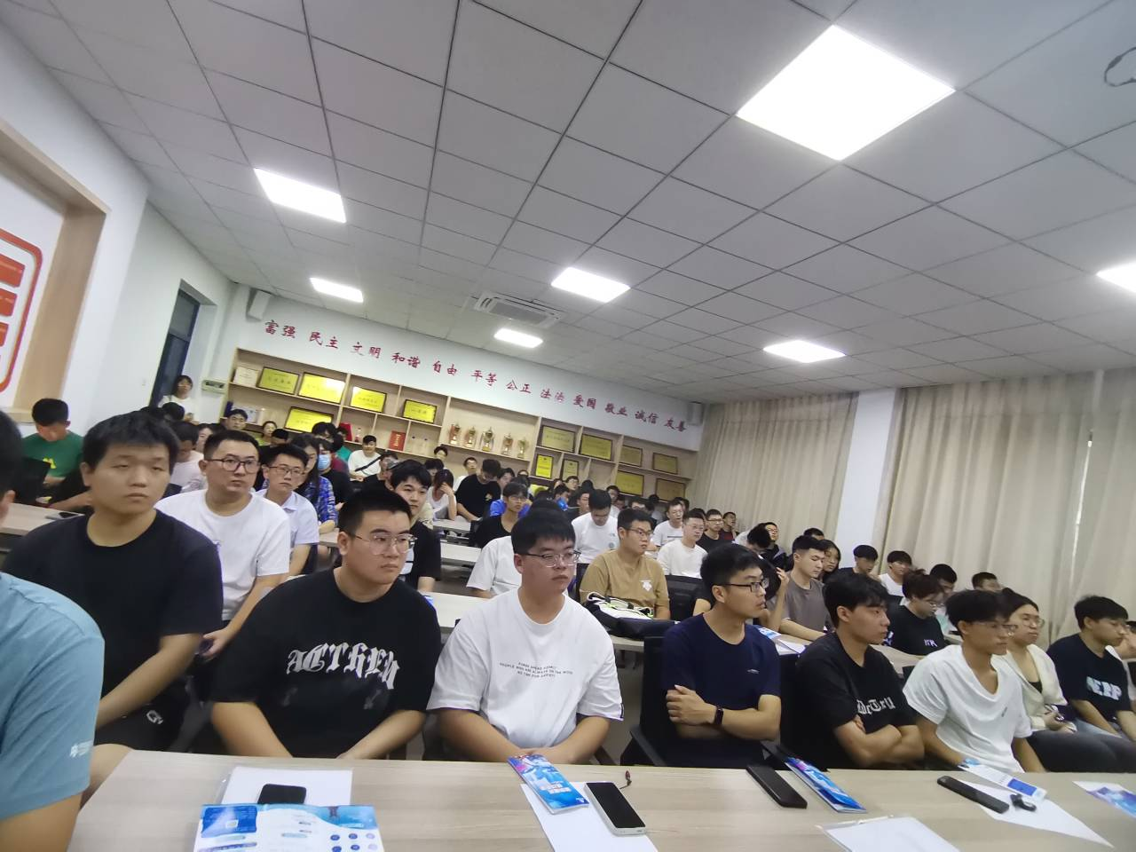 公司招聘负责人对公司进行了简单介绍,并就本次招聘岗位、晋升空间、福利待遇、招聘流程等环节进行了详细分析。招聘现场,同学们在简历制作、笔试范围、面试要求等方面与招聘负责人进行深入交流讨论。