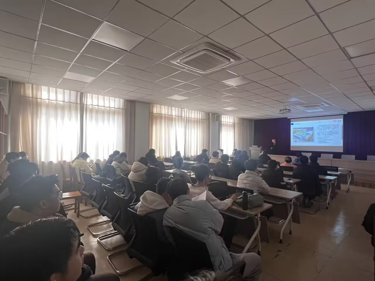 公司招聘负责人首先围绕今年就业形势、春招区别、企业等级划分、优秀应聘者素质等环节开展交流分享。随后对公司进行了简单介绍,并就本次招聘岗位、晋升空间、福利待遇、招聘流程等环节进行了详细分析。招聘现场,同学们在简历制作、笔试范围、面试要求等方面与招聘负责人进行深入交流讨论。