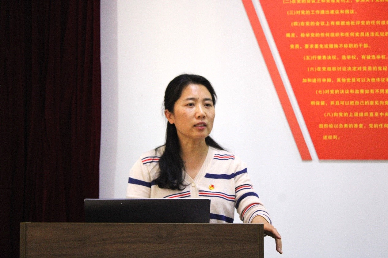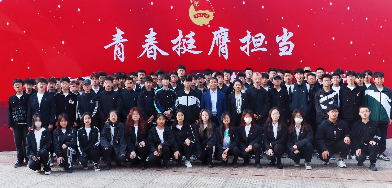 巩丽带领全体新团员学习了习近平总书记在五四青年节对广大青年的寄语——“广大青年要继承和发扬五四精神,坚定不移听党话,跟党走,争做有理想,敢担当,能吃苦,肯奋斗的新时代好青年。”随后,巩丽以“爱国、进步、民主、科学”的五四精神为切入点,从“有理想、敢担当、能吃苦、肯奋斗”四个方面,引导全体团员树立以爱国为底色,以强国有我为使命的理想信念,在爱校荣校中贡献青春力量,在强国复兴征程中挺膺担当。