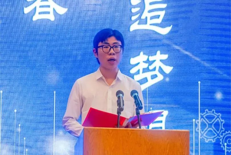 在校生代表机制2103班臧宏鑫同学发言。他代表在校生向学长学姐表示感谢,同时祝愿学长学姐在未来的道路上一切顺利,他表示将继续发扬机械学子的优秀品质,为学校的发展和繁荣贡献自己的智慧和力量。
