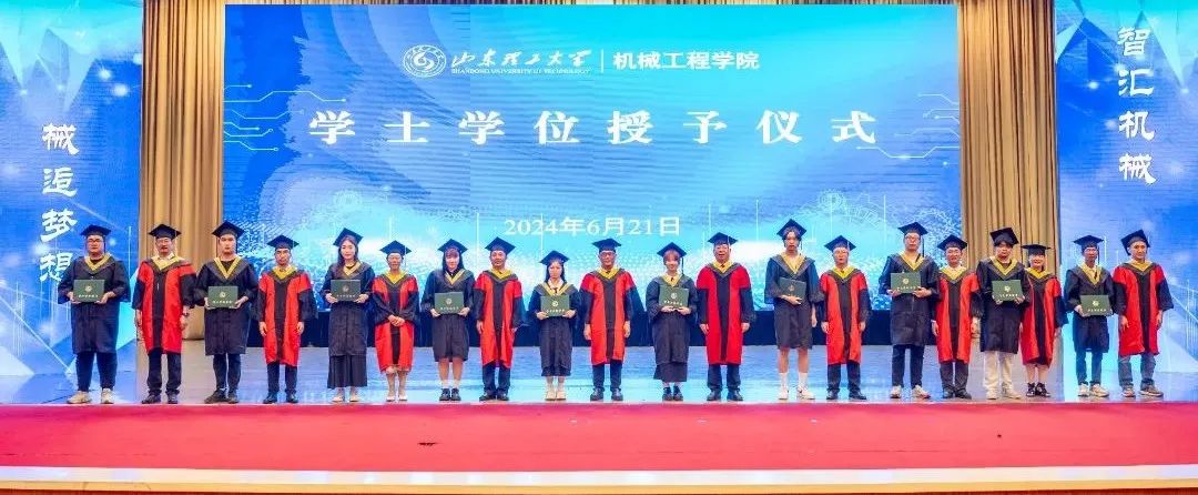 10位教师为2024届全体毕业生正冠拨苏,授予学位证书并合影留念。