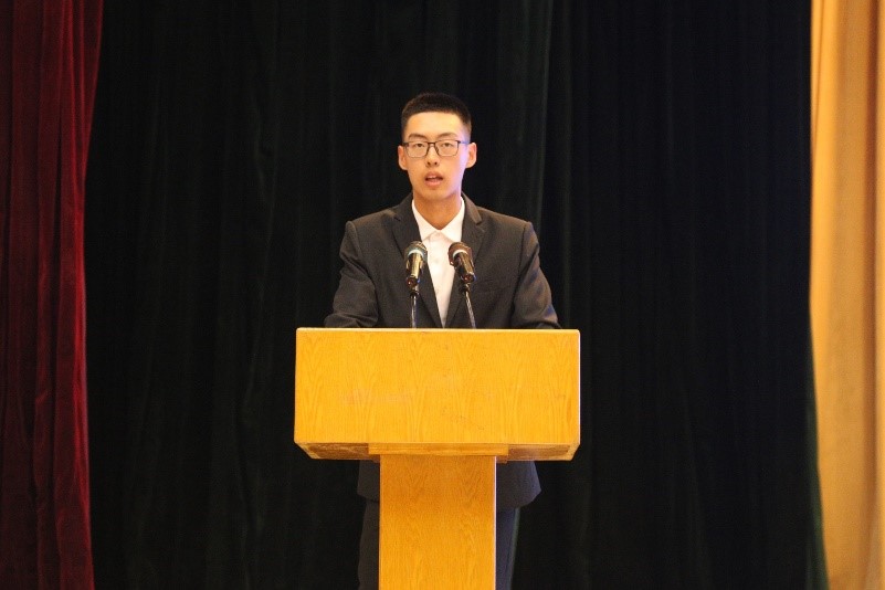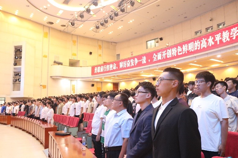 新生代表机制2403班马云麒同学发言,他代表全体新生表示在未来的大学生活中要努力做到以下五点,一是勤于学习,敏于求知;二是加强思想品德修养,树立正确观念;三是善于明辨是非,善于决断;四是脚踏实地,务实前行;五是合理规划时间。作为新时代青年,要敢担当、能吃苦、肯奋斗,要努力实现个人理想,为实现中华民族的伟大复兴做出贡献。