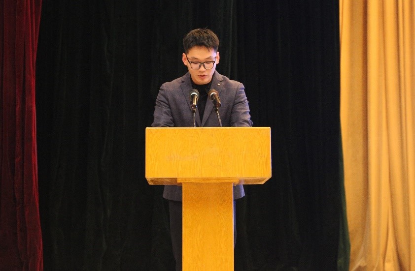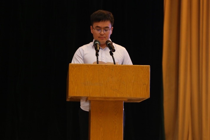 在校生代表机械22级硕士研究生霍兆林发言。他分享自己在本科时的学习经历,并就“抓住机遇”“承担责任”“合作共赢”三个方面告诉新生们,大学是一个展示自我、提升自我的舞台,是一个充满无限可能的地方,大家应该抓住机会,敢于迎接挑战,勇于承担责任,实现个人成长。