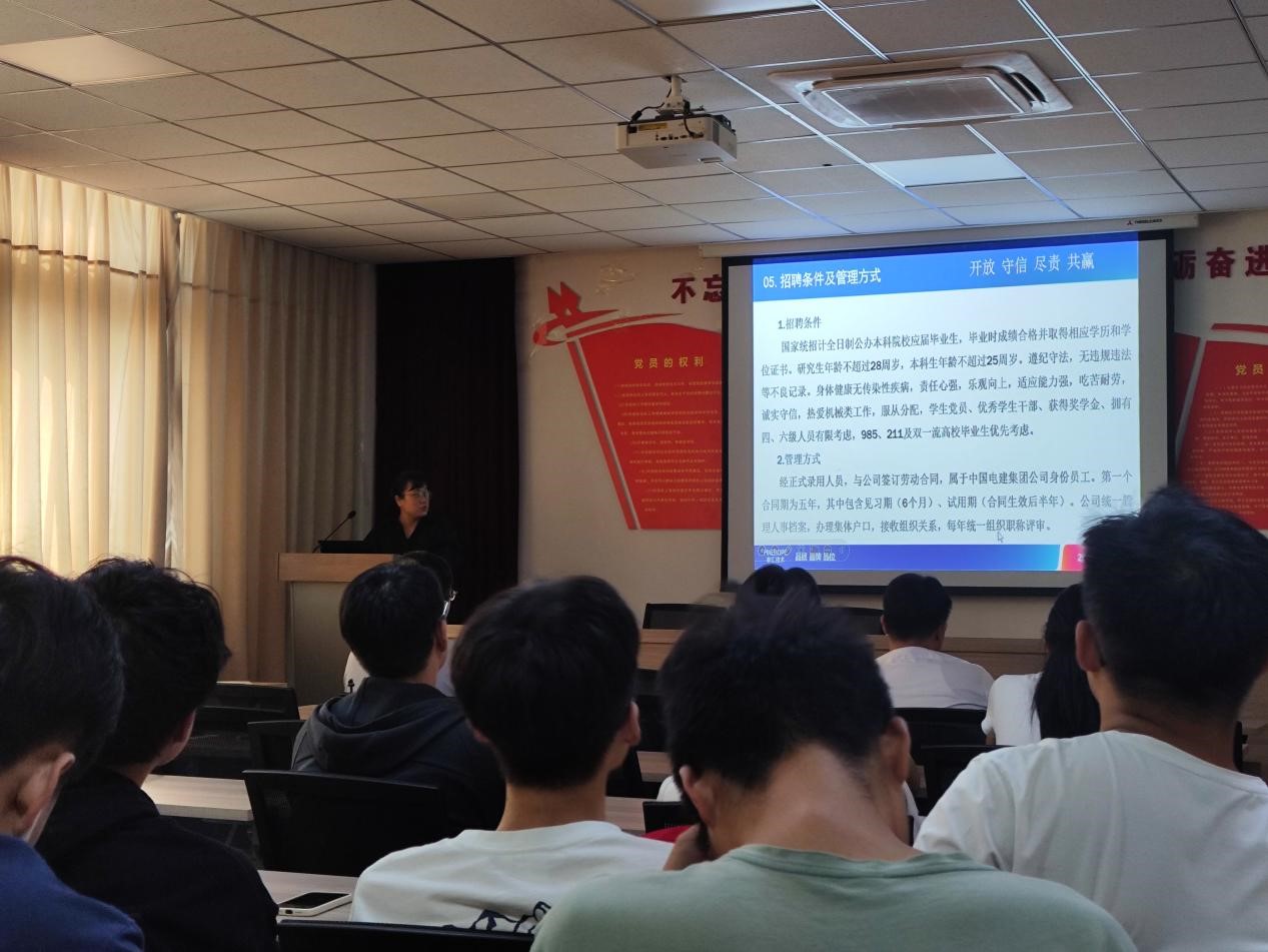 山东丰汇设备技术公司宣讲负责人基于企业发展历程、发展规模与业务领域等,围绕人才培养、薪酬福利、工作地点等多个层面阐述,并就本次招聘岗位和应聘流程等环节进行了详细分析,帮助毕业生全面了解就业环境。宣讲的同时负责人也同学们做相关职业生涯规划,提出相应的培养计划,并围绕优秀应聘者素质等环节展开交流分享。