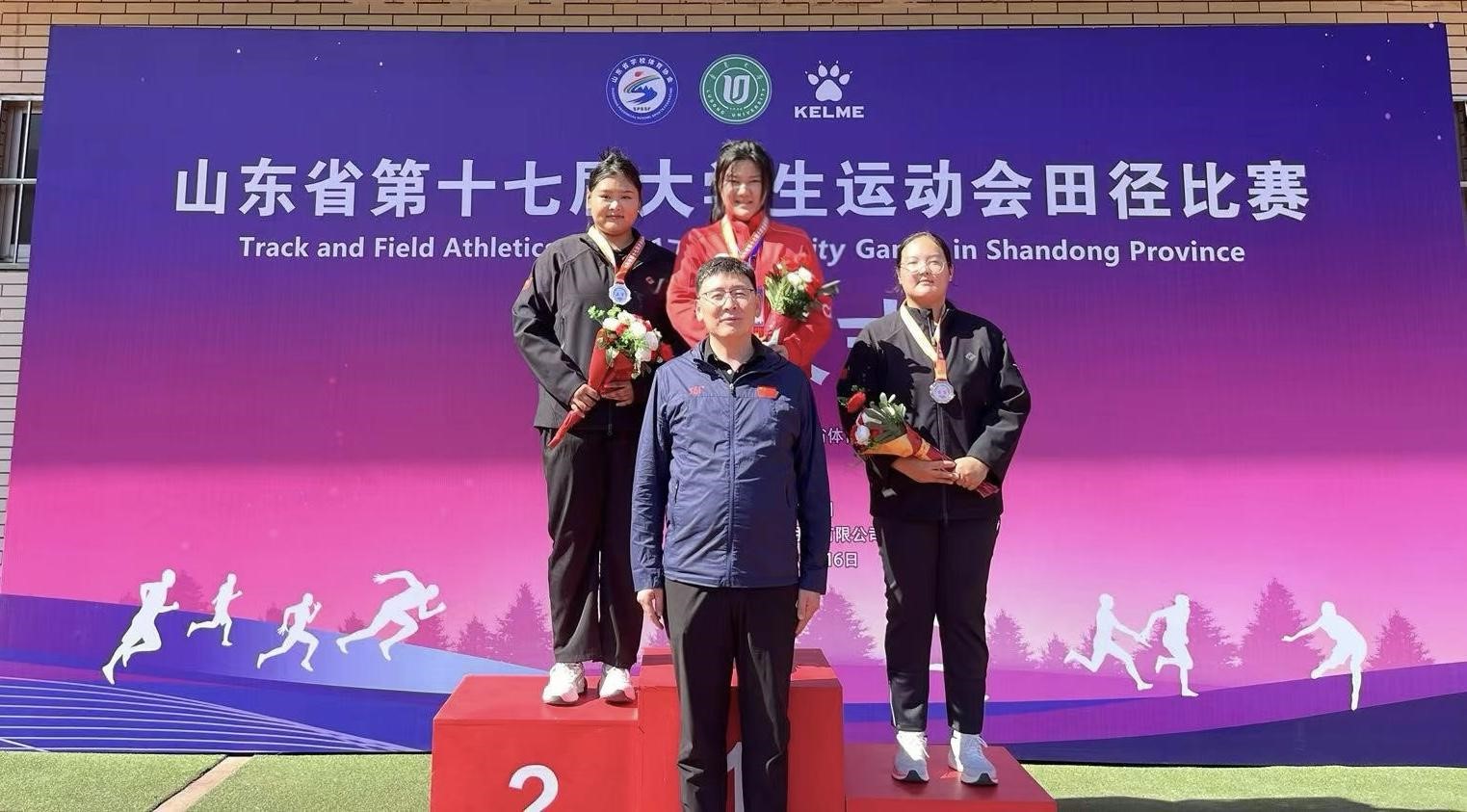 10月8日-15日,山东省第十七届大学生运动会田径比赛在烟台鲁东大学举行。比赛期间,我校派出4名教练员和37名运动员(其中甲组11人、丙组26人)参加该项赛事。其中,我院商笑笑同学获得女子甲组链球冠军、铁饼季军,董振浩同学获得男子甲组400米栏冠军、400米季军,共斩获2金2铜四枚奖牌。最终我校以7枚金牌、8枚银牌、8枚铜牌取得田径比赛女子甲组团体总分第八名、男子丙组团体总分第五名、女子丙组团体总分第二名,丙组团体总分位列省属高校第二名,我校荣获“体育道德风尚奖”。