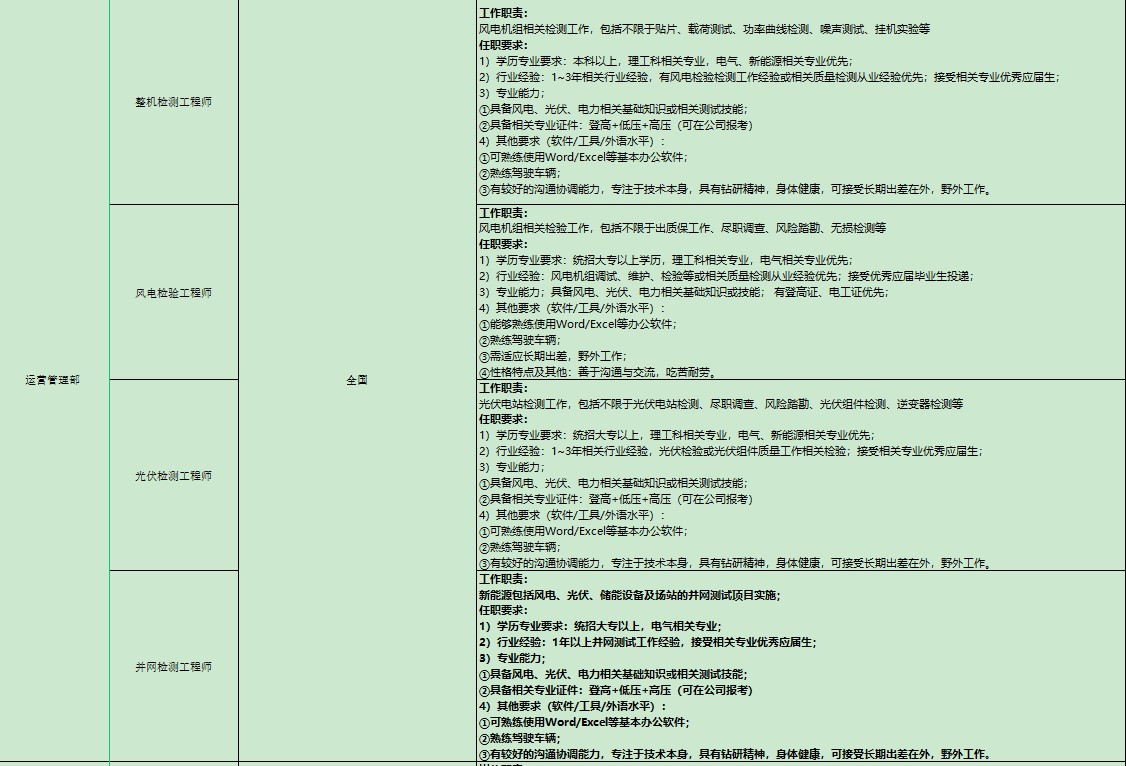 招聘专业:机械、电气、新能源等相关专业。