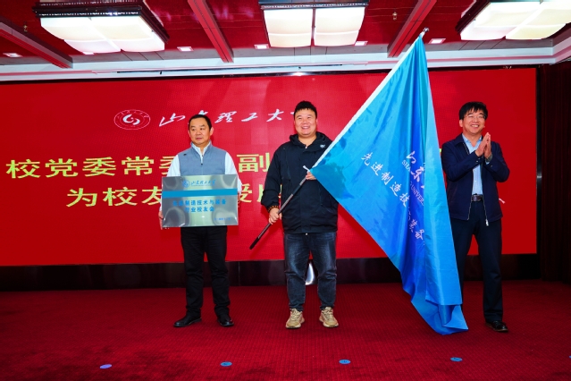陈盛伟代表学校接受了山东秀荣铸造材料有限公司总经理张勇的捐赠,并为其颁发了捐赠证书。