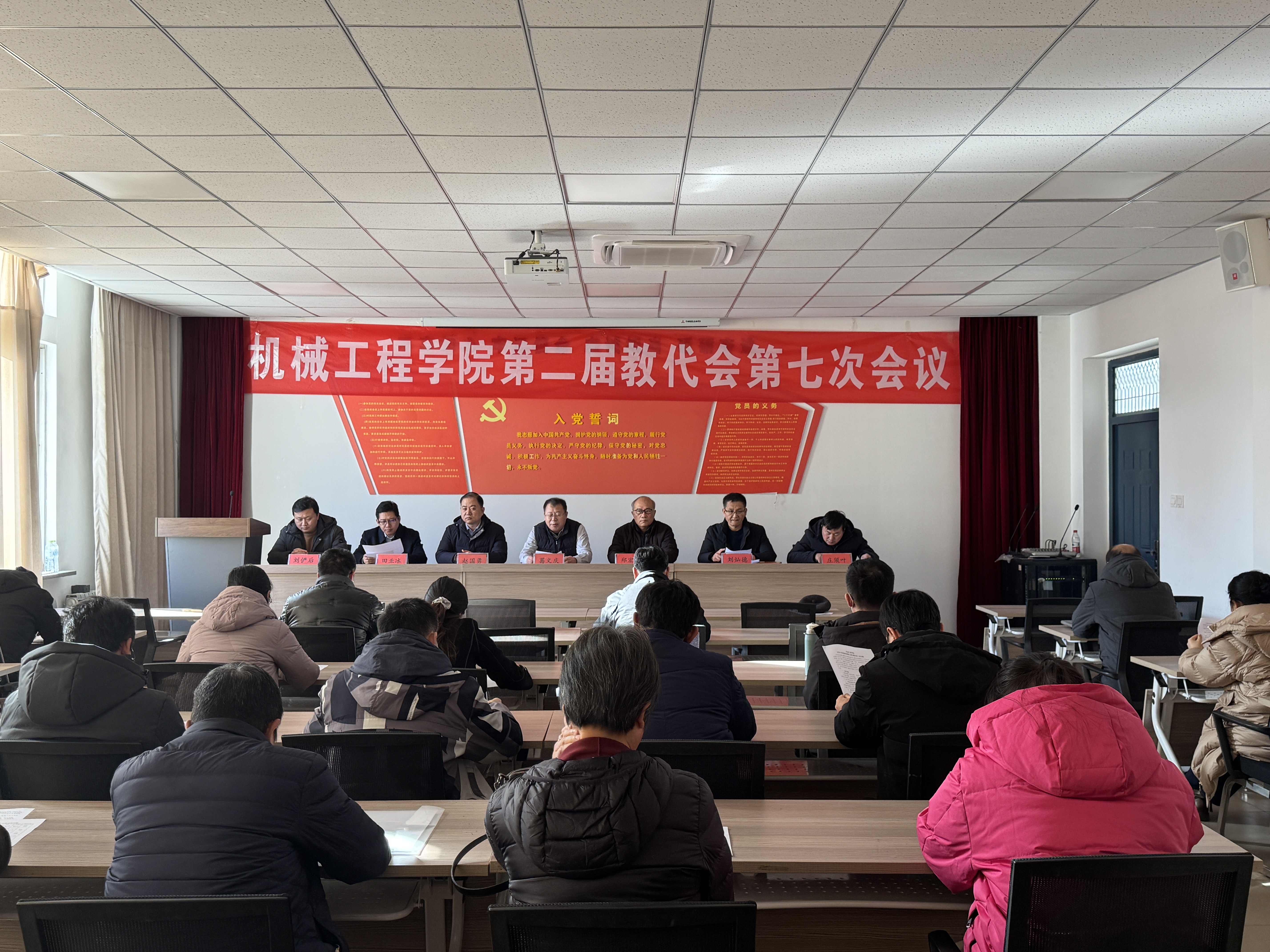 1月8日下午,我院在12号教学楼412会议室召开第二届教职工代表大会第七次会议。此次会议由党委书记葛文庆主持,学院领导班子及40余名教师代表参加。