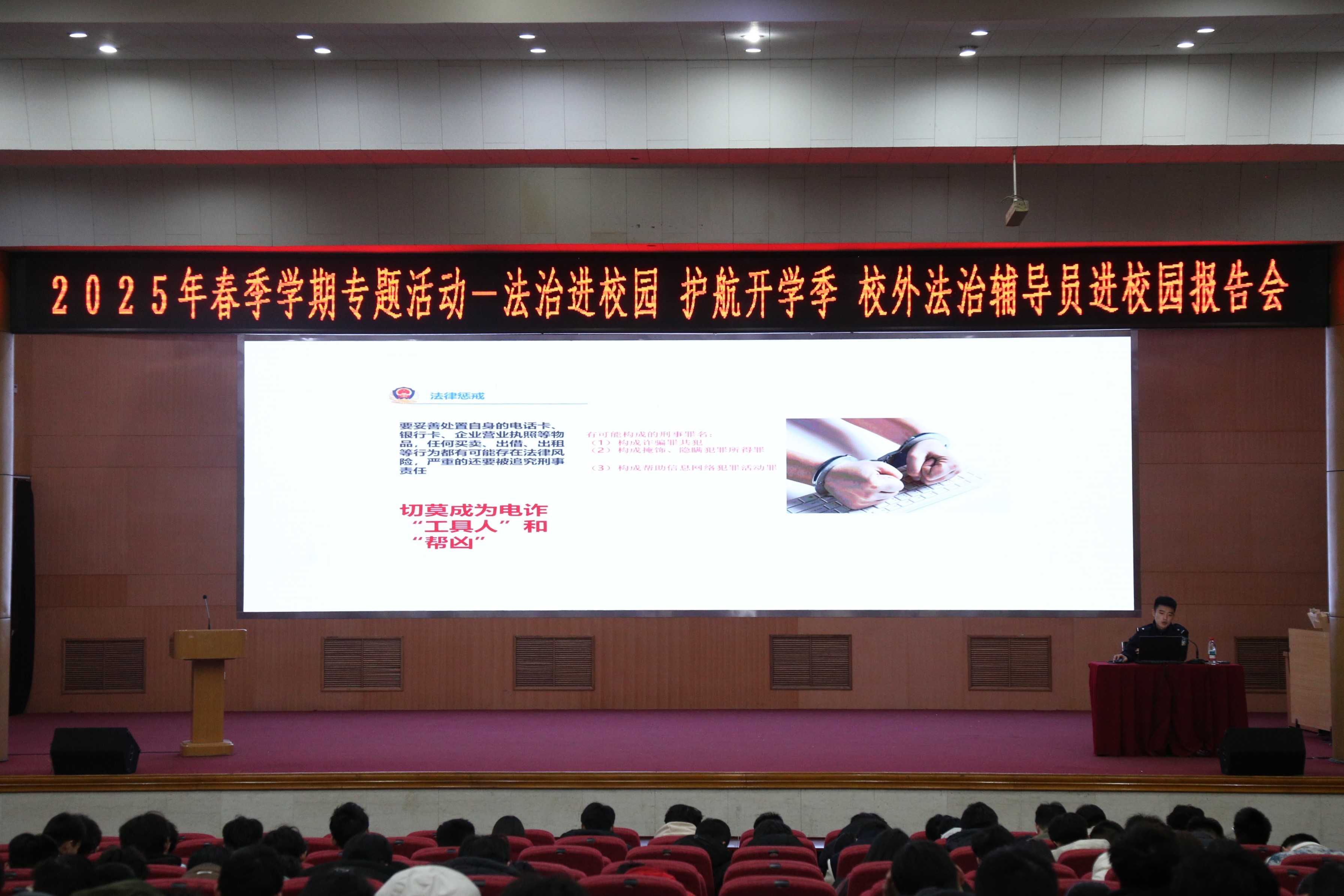 此次校外法治辅导员进校园报告会作为学校“法治进校园 护航开学季”系列活动的关键一环,让同学们对网络电信诈骗、“两卡”犯罪等有了更深刻的认识,也敲响了安全防范的警钟,为警校深入合作奠定了更坚实的基础。未来,我校将继续携手公安机关,常态化开展各类安全教育活动,不断提升学生的安全防范意识与自我保护能力,共同营造安全、和谐的校园环境,为学生的成长成才筑牢安全防线。