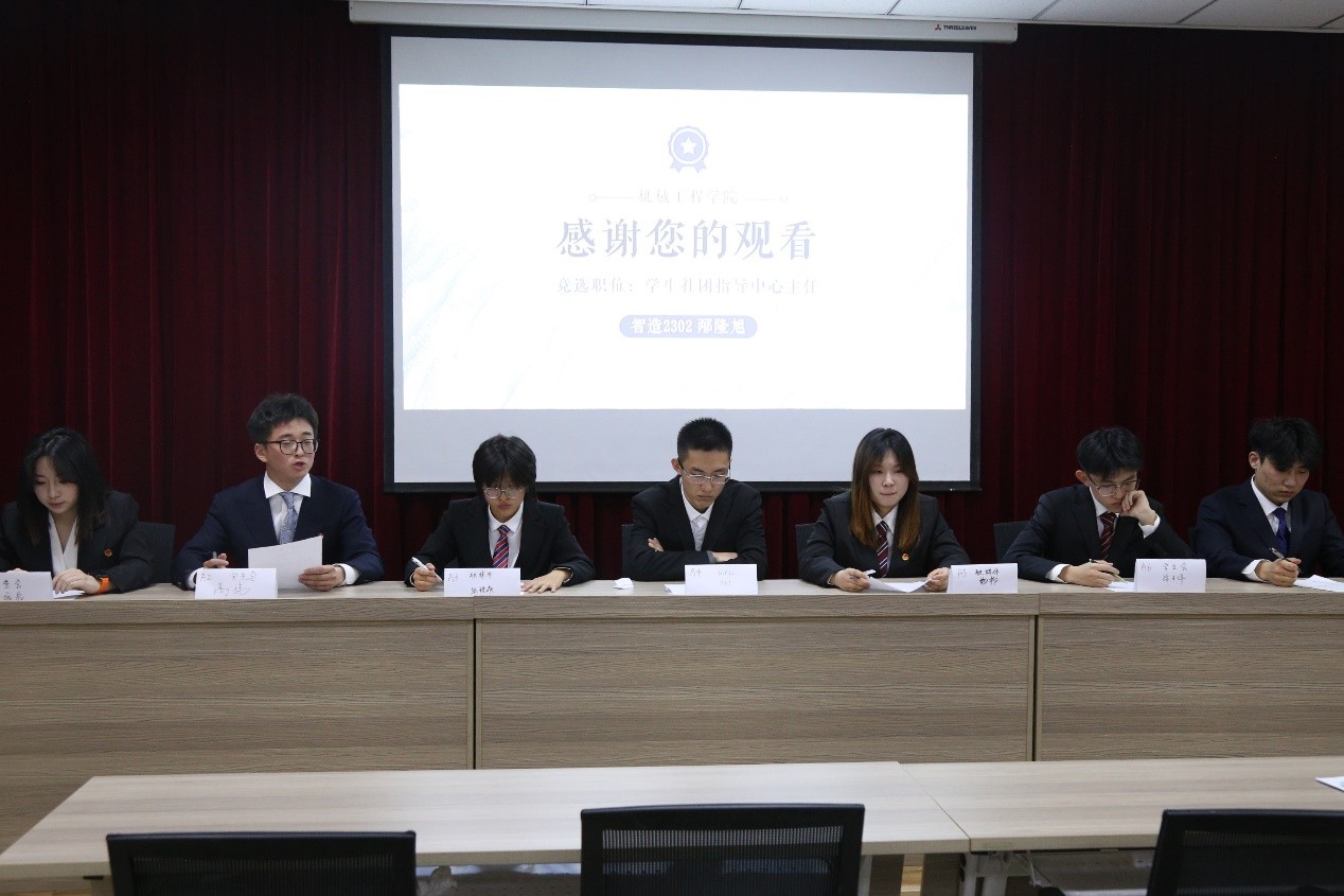 此次选举坚持“公开、公平、公正”的原则,在紧张、热烈的气氛中进行,13名参选者根据抽签顺序依次上台,分别从个人简介、工作经历、工作计划等多个方面展开陈述,展现出对学生组织工作的奉献精神和担当意识。评委就竞选动机、工作优势等方面对候选人进行提问,参选者们思路清晰,冷静回答,积极展示自我风采和工作思路,赢得了台下阵阵掌声。
