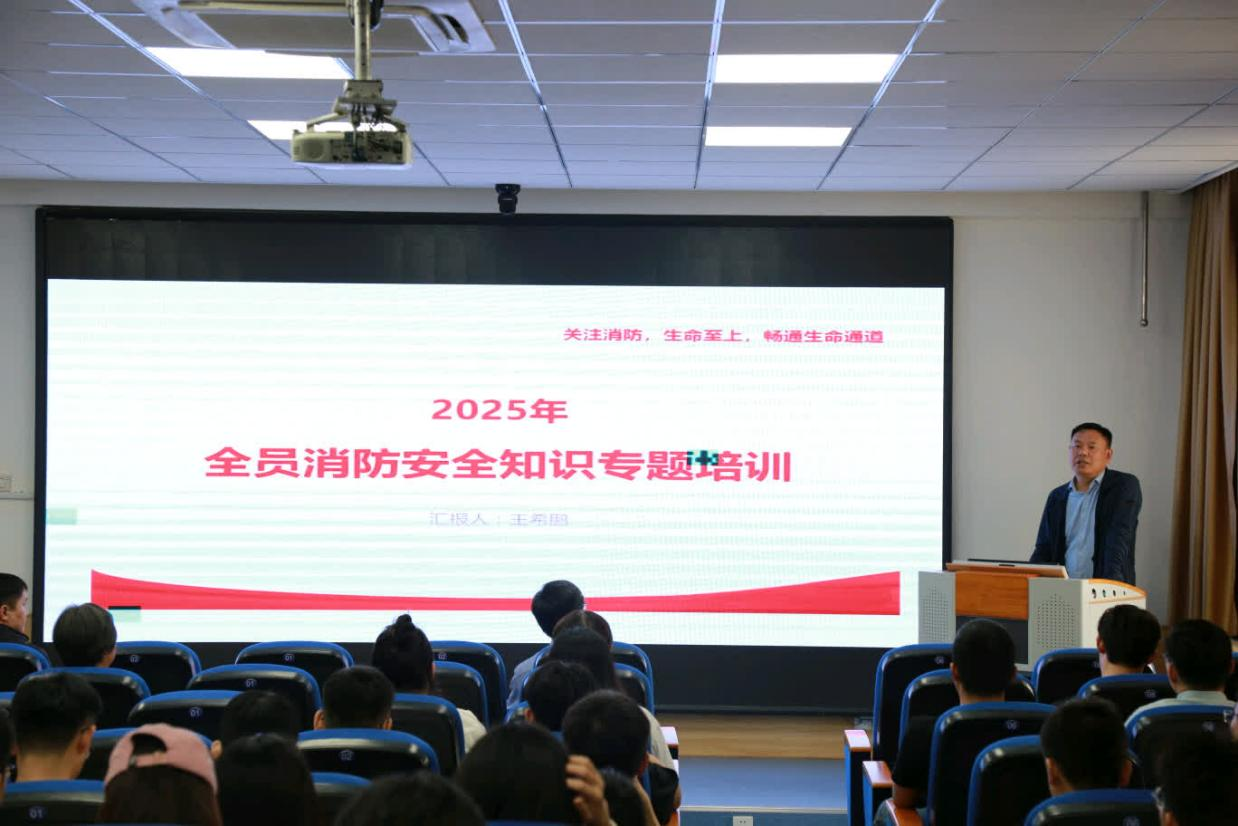随后,王希鹏从近年来发生的典型火灾案例出发,结合校园消防特点,围绕如何预防火灾、如何处置初期火情、如何安全逃生、消防通道检查、常见安全隐患、法律法规等方面进行了详细的讲解,着重强调了学院实验室的安全隐患以及实验仪器与材料的规范使用。王希鹏提出学院要严格遵守安全管理要求,做到网格化管理、三管三必要、做到专人专责,定期检查。学院师生更要从细节入手,关注消防安全,提高消防安全意识。