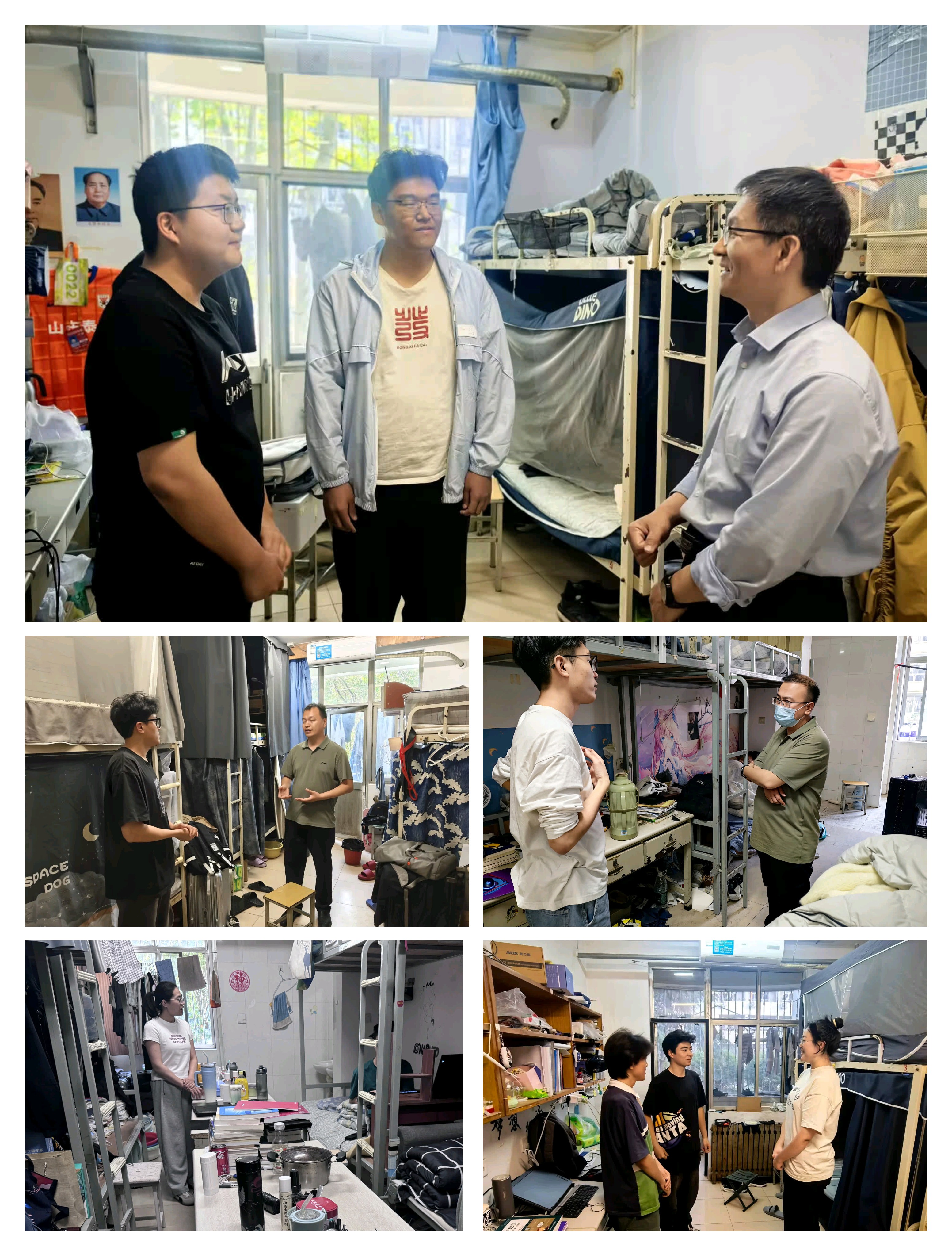 检查过程中,刘灿德副书记和辅导员们逐间走访宿舍,重点围绕违规电器使用、私拉乱接电线、存放易燃物品、吸烟、宿舍环境卫生等方面进行细致排查。针对发现的问题,当场提出整改要求,并督促学生立即整改。同时,刘灿德副书记和辅导员们还与学生亲切交流,宣传假期安全知识,提醒学生注意假期出行安全、财产安全和网络安全,叮嘱留校学生注意公寓消防安全,增强学生的安全防范意识。