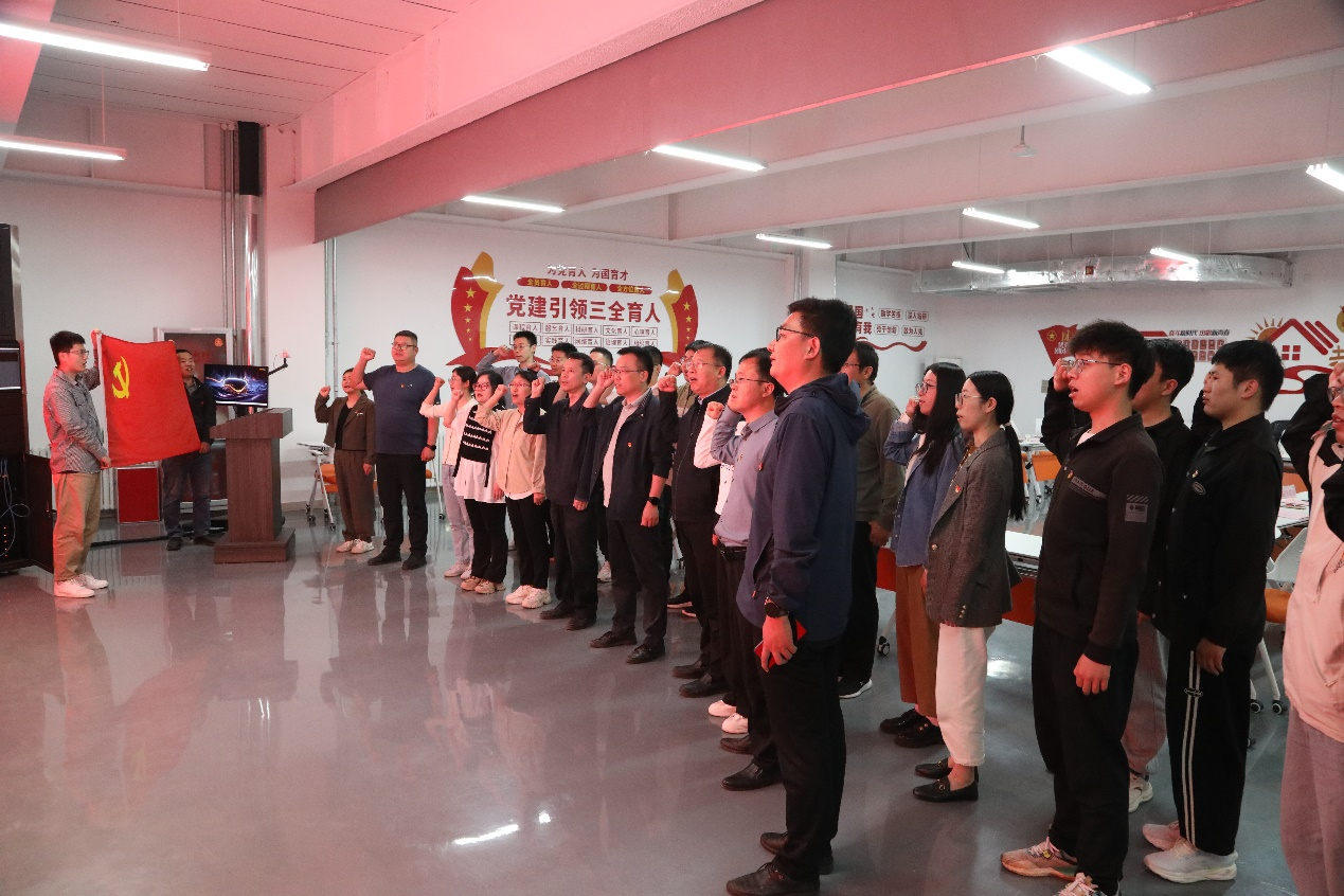 交流结束后,双方党员在党旗前庄严肃立,重温入党誓词。