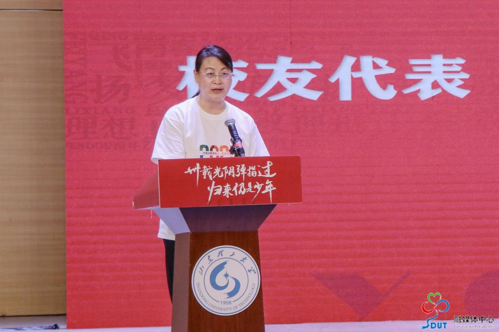在纪念大会上,1991级机械英语专业校友、山东外贸职业学院院长刘珉代表返校毕业生发言,她对母校与恩师的栽培表示感谢,为学校近年来取得的成绩感到骄傲,承诺将继续以躬身力行反哺母校建设,助力后辈学子成长。难得的是,34年前,刘珉校友曾代表入学的600余名1991级新生在开学典礼上发言,34年的时空对话,见证了校友与母校的共同发展。