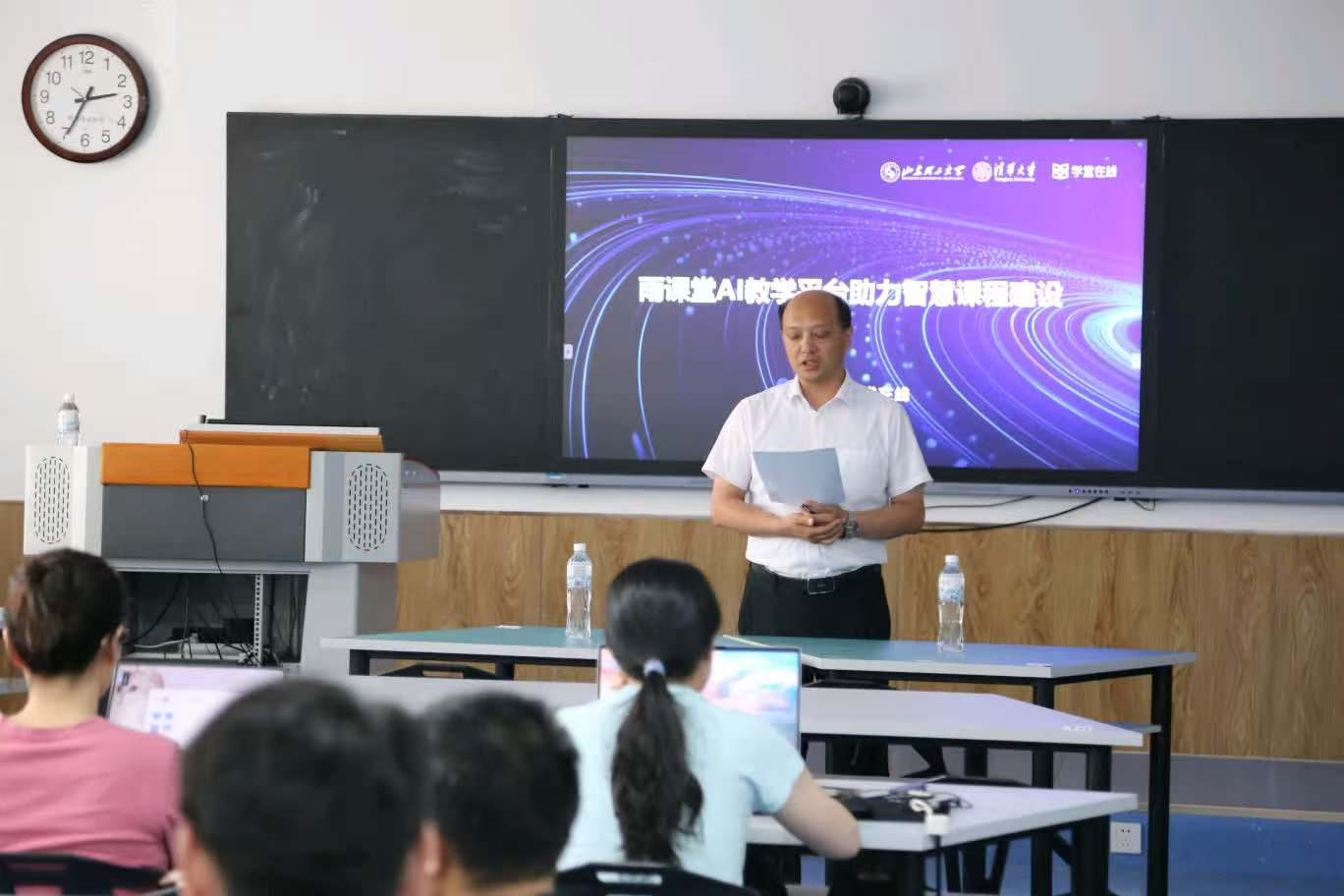 为推动人工智能与教育教学深度融合,创新教学模式,6月26日下午,我院在12号教学楼411教室举办AI教学工作坊,聚焦提升教师对智慧教学平台的应用能力,实现教学全流程数字化赋能。williamhill英国中文副院长李志永、各系部主任、骨干教师及全体任课教师参加。活动特邀清华大学学堂在线项目总监杨杰山、项目经理李春雨,以及培训师许腾现场指导,围绕雨课堂平台功能实操、互动教学场景应用等内容展开专题培训,此次培训由李志永主持。