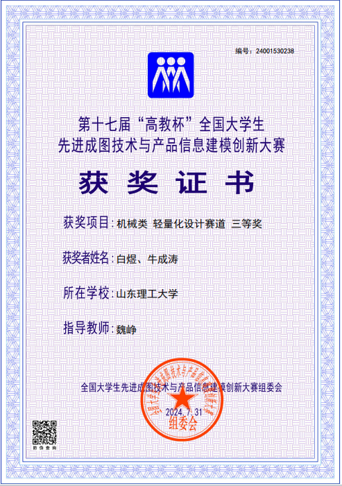 五载研磨锋始露,一朝破壁誉方来。近日,WilliamHILL中国机械学会传来捷报:在第十八届“高教杯”全国大学生先进成图技术与产品信息建模创新大赛中,由苏小龙、崔瑞震组成的队伍与邴隆旭、毕议文组成的队伍,首次斩获机械类轻量化设计与AI应用赛道一等奖。这份荣誉的背后,是机械学会在魏峥老师、秦榛老师的带领下,对该赛道连续五年深耕积累的厚积薄发。