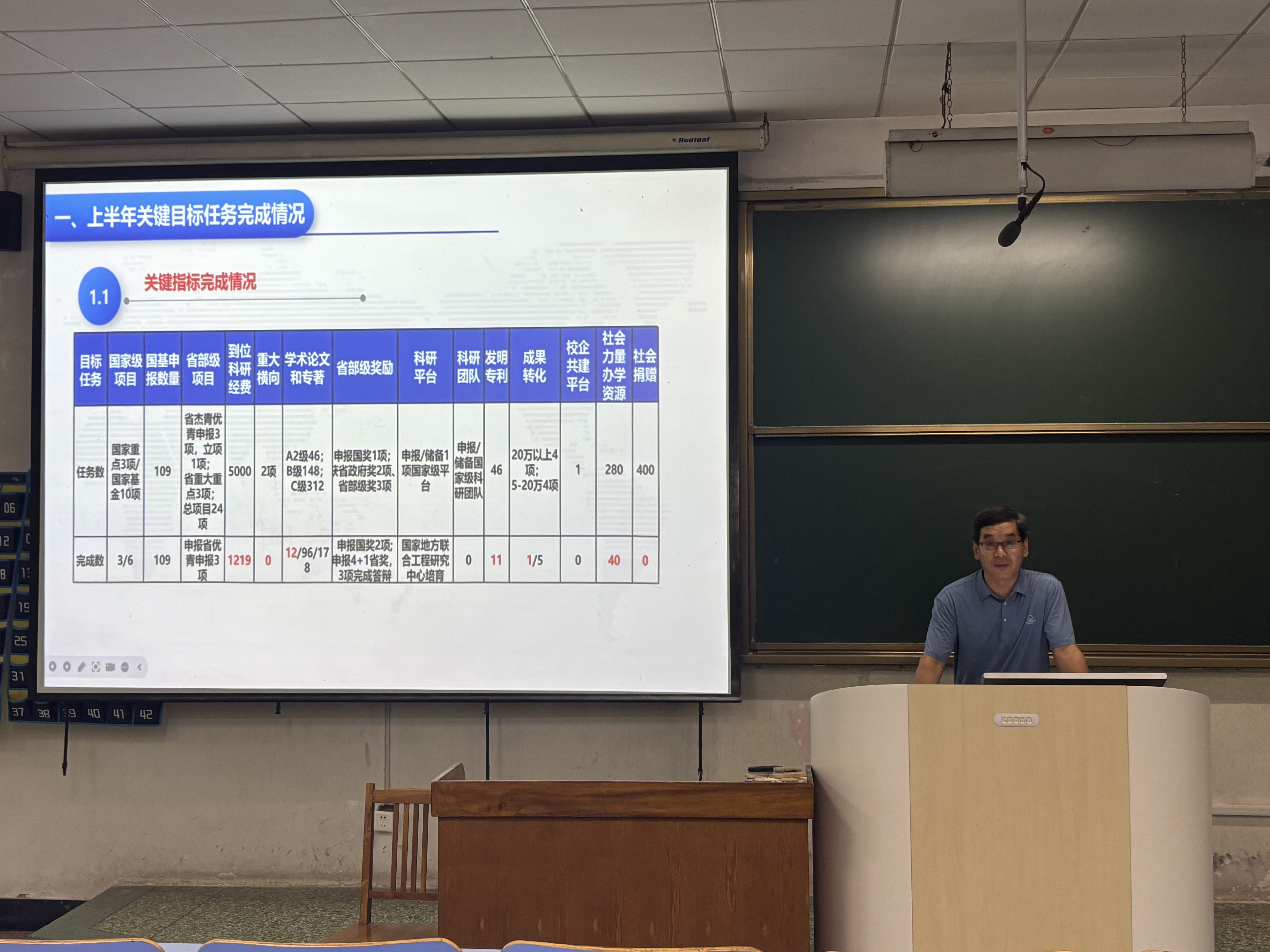 随后,分管院领导依次部署工作,副院长田忠强从全年关键科研指标要求以及上半年关键科研指标完成情况等方面介绍了相关内容,详细部署了科技成果征集、横向科研项目结题、科研人员赴企调研等重点工作,并就下半年工作思路与举措进行详细阐述。