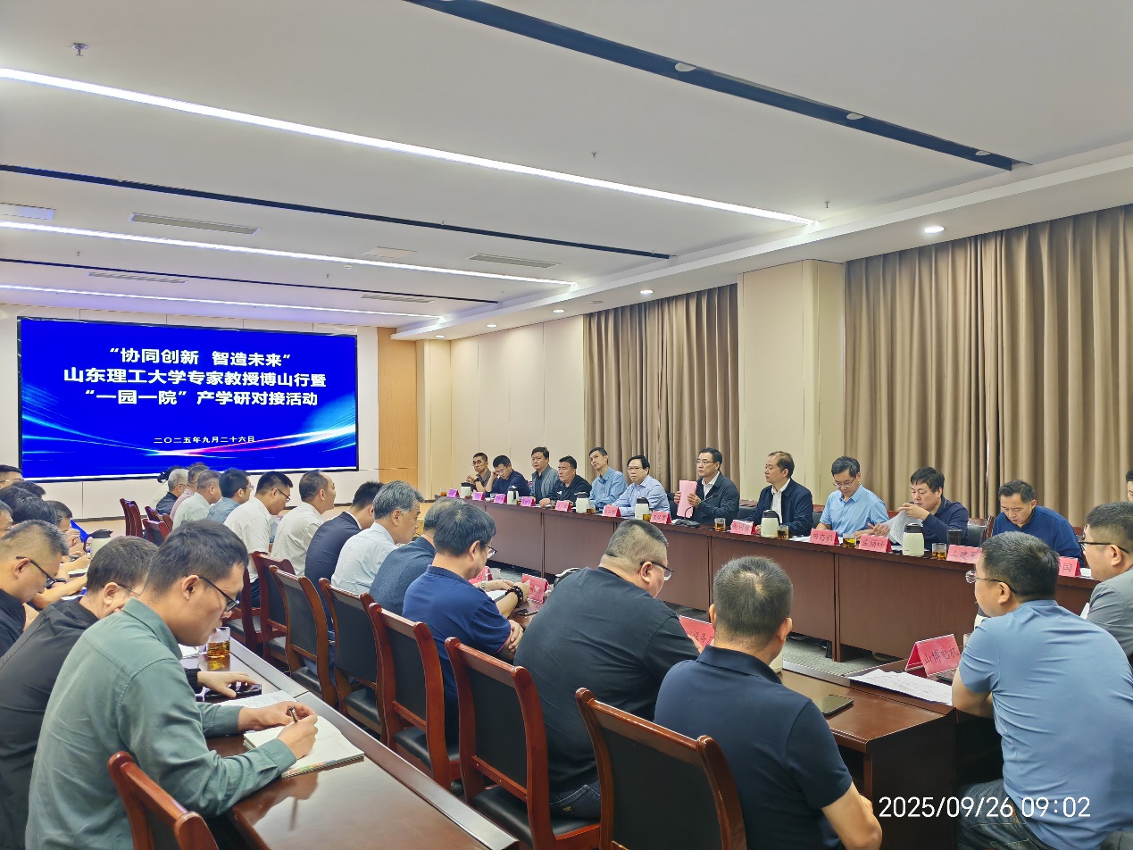 在校企合作座谈会上,我院专家教授围绕智能装备、绿色铸造、精密制造等领域,推介可转化的科技成果;博山企业代表则结合生产实际,介绍企业发展技术攻关需求。座谈会后,校企双方还进行了“一对一”精准对接,为后续合作奠定坚实基础。
