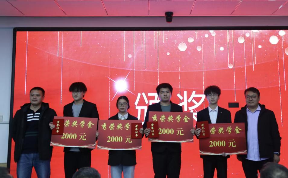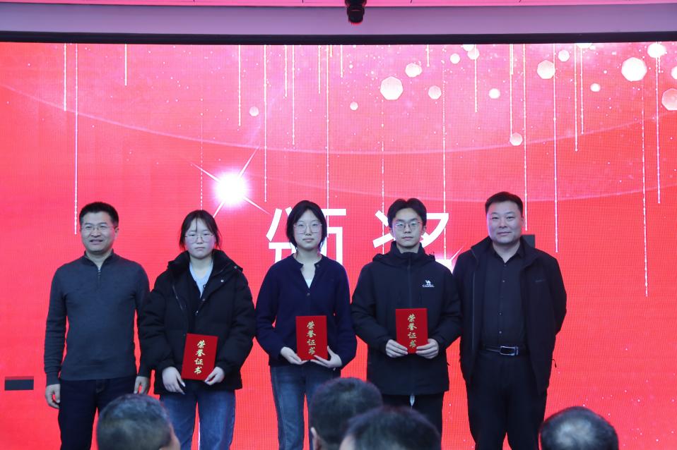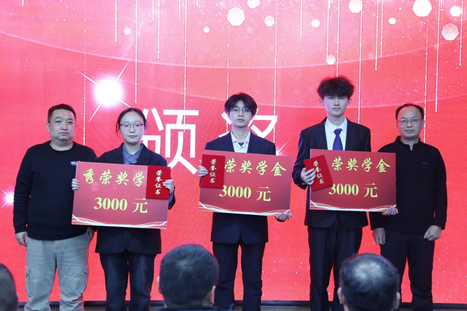 伴随着全场热烈掌声,颁奖嘉宾依次登台,为获奖学生颁发荣誉证书与奖金。