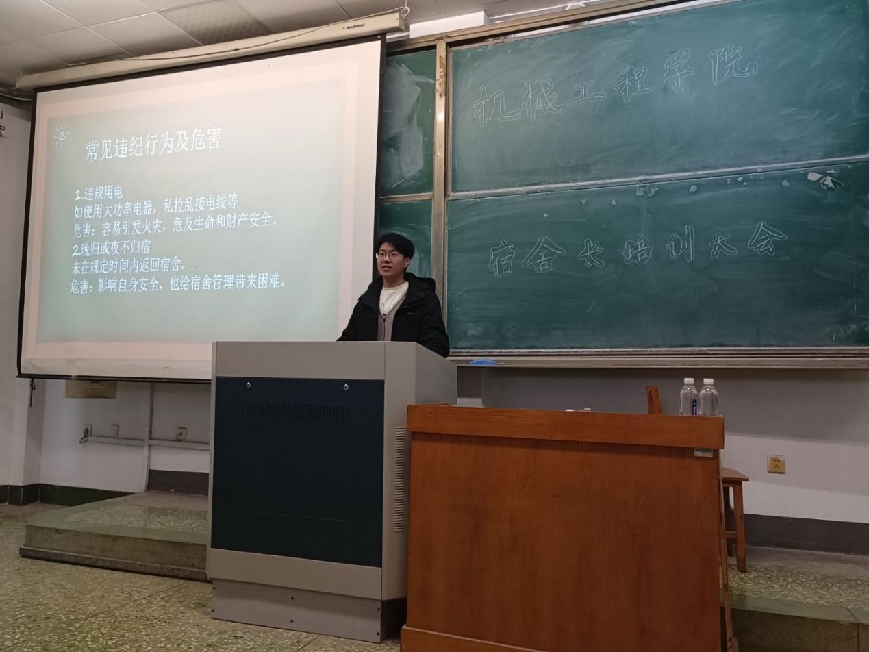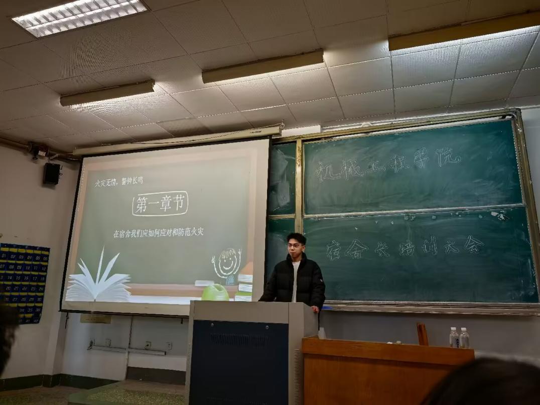 本次培训会从防火安全、用电安全、宿舍卫生、规章制度四个方面展开。通过四位工作人员的讲解,旨在宣传消防安全知识,提高全体成员宿舍应急情况处理能力和学习宿舍管理条例。